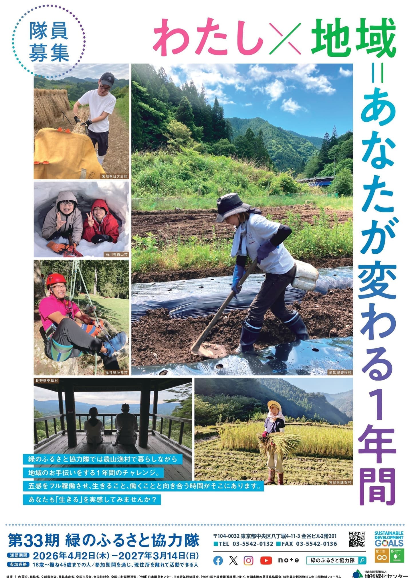 第33期緑のふるさと協力隊 隊員募集説明会 日程一覧 (オンライン開催あり)